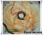 Блины выложить в форму для выпечки кексов (т.е. с дыркой посередине, как у меня на фото), предварительно смазав форму маслом, так, чтобы края блинов немного свисали. -
