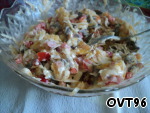 Соединить все ингредиенты, перемешать аккуратно. Заправить майонезом с горчицей (горчицу можно не добавлять, кто не любит. Я смешивала майонез с горчицей в отдельной тарелке и пробовала на вкус, чтобы было не очень остро)