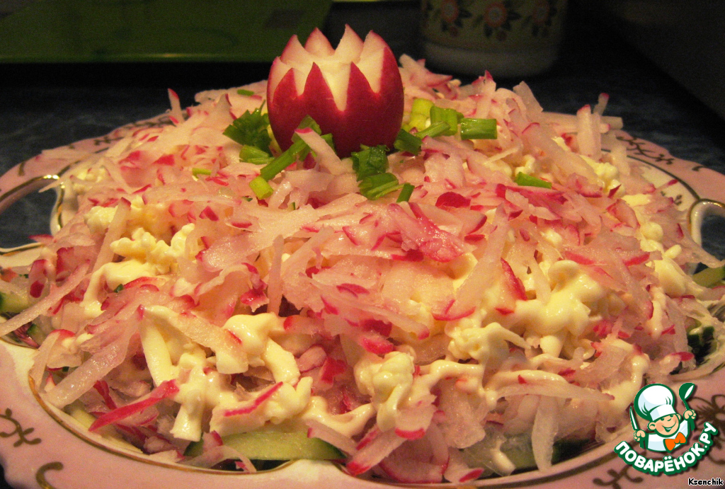Сезон редиски у нас уже закончился и я заменила ее редькой "Дайкон".