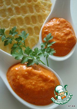 Перцы (красивее красные) разрезать на половинки, удалив перегородки и семена. Положить на противень кожурой вверх и поставить в духовку. Запекать лучше, конечно, с функцией гриль, минут 10-20, пока перцы не приобретут темный цвет, почти черный. Запеченные перцы переложить в пакет или фольгу и дать полежать минут 20.