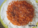 К смеси добавить кукурузный крахмал, апельсиновый сок,