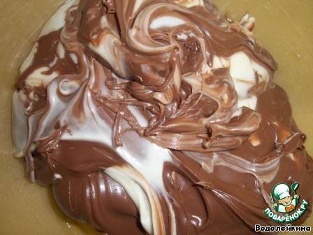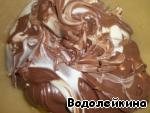 • Берем шоколадную пасту (у меня была двухцветная), выкладываем в миску, в которой будем тесто замешивать.