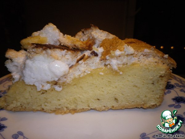 Сверху получается лёгкий слой безе, под ним тоненький слой сиропа (сахар из безе), и, наконец, мягкая, ароматная "сущность" пая.