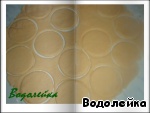 Вырезаем из теста кружочки. Диаметр зависит от длины наших яблочных кусочков, и нужно добавить немного на защипывание. -