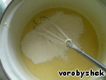 Смешать молоко с 2 ст.л. сахара и дрожжами.
