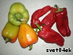 2. Берем перчики, моем, чистим. У меня были обычные болгарские перцы и перцы от свекровушки, из которых наши бессарабские болгары делают паприку, называется он пепер, он очень ароматный, но тоненький)))
