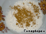 Готовим панировку: к муке добавляем карри и перемешиваем. -