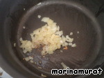 В это время делаем соус. На сковороде обжариваем лук и чеснок до золотистости, добавляем половинку кофейной ложки молотого кориандра, перемешали и снимаем с огня.
