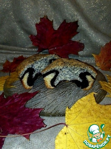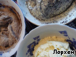 Тесто разделить на 3 части. Одну оставить, в одну добавить мак, который заранее залить кипятком и поварить до мягкости, а в другую - какао.