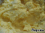 В маргарин добавить желтки, взбить. -