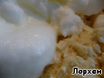 Белки взбить до крутой пены, вмешать лопаткой в тесто.