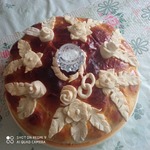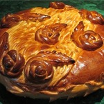 Думала-думала и надумала я его к свадьбе брата (завтра она у нас) испечь сама... Во-первых, я точно знать буду из чего он приготовлен, во-вторых, это и для меня опыт, а в-третьих, свадьба всегда влетает в копеечку, и 50 $ сэкономленных лишними не бывают... Да и выпечка домашняя для любимых, приготовленная с душой, всегда приятна. Этот каравай не слишком сложен и имеет великолепный вкус! Именно такой хлеб я люблю сама, а т. к. с дрожжевым тестом обычно я не очень дружу, то теперь этот рецепт станет моим любимым. Вчера пекла "на пробу" первый - его не было уже утром, домашние в восторге, кушали его даже с чаем - а это главное!