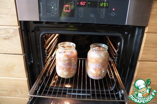 Когда закипит, температуру снижаю до 140*С (чтобы банка не лопнула, и не разбрызгивалось то, что в банке.