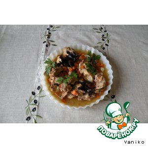 Такого рецепта на этом сайте не нашел. А едят все - и трезвенники, и язвенники. Некоторым не хватает моркови и чеснока. Специи по вкусу - какую кухню любите. Пробовал всякие - это блюдо не испортит. Готовлю блюдо лет 20. Если хотите съесть с косточками, готовьте 1, 5 часа.
