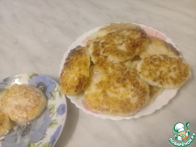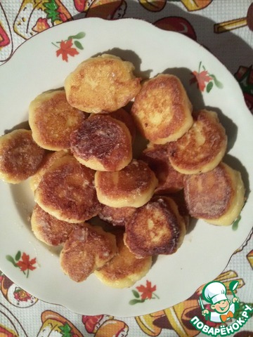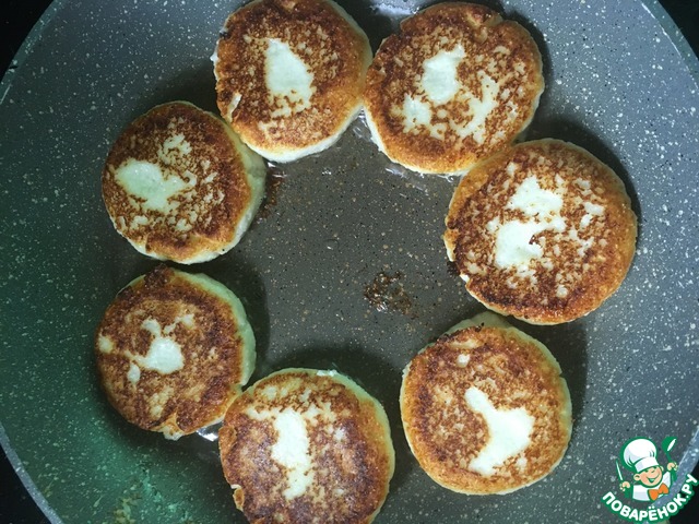 ПыСы: В процессе готовки думала, зачем мне маленькие сырнички, слеплю, как обычно, по ложке с горкой.. и тут они кааак расплылись во взрослые, огромные сырнищи!
