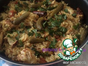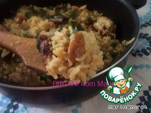 А также маленький изюм, в Турции его называют "куш узюм" и всегда используют для риса или сармы; и миндаль (заливаем кипятком и очищаем от кожицы). Нухут - по желанию. Если будете использовать, тогда замачиваем на ночь и отвариваем в большом количестве воды около часа.