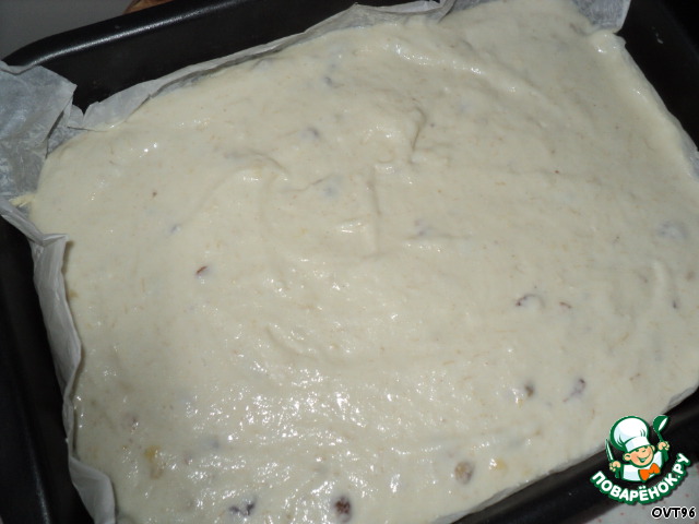 • Тесто выливаем в форму и ставим выпекать в духовку при температуре 180-200 град. на 40 минут.