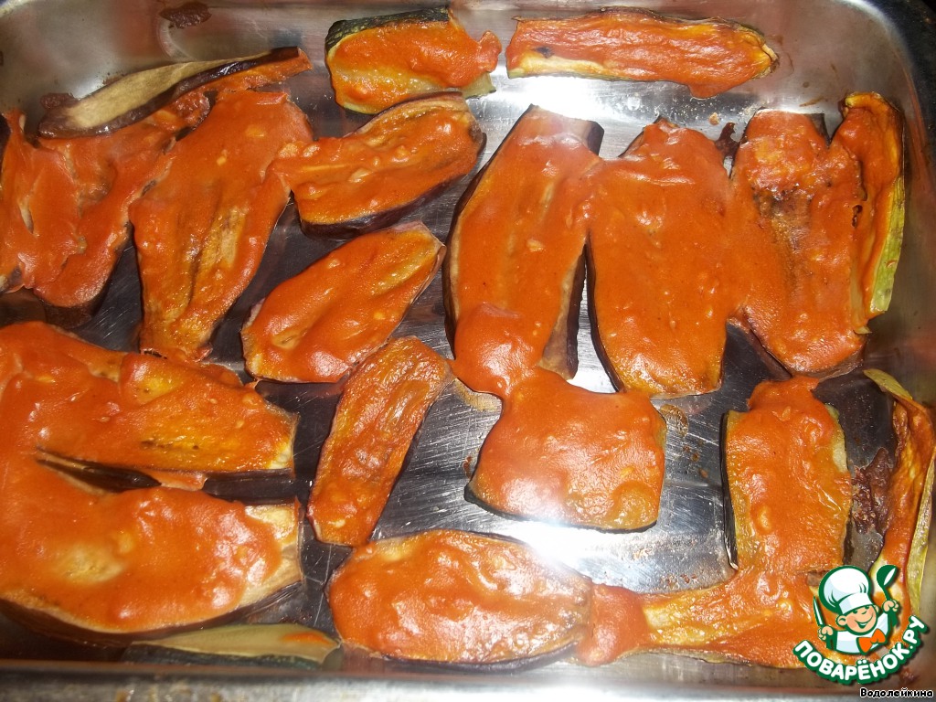 Смазать полученным соусом баклажаны, поставить на режим "Тушение, томление" минут на 25. После окончания приготовления можно посыпать зеленью!