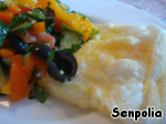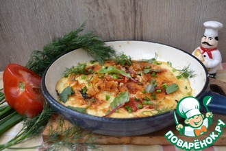 Когда яичница готова, снова посыпаем сыром и немедленно подаем к столу. Так как блюдо воздушное и остывает очень быстро, есть нужно, действительно, сразу.