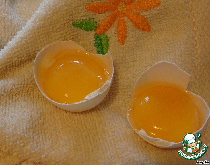 Отделяем желтки от белков, желтки на время откладываем в сторону.