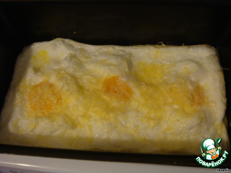 Сверху трем сыр на мелкой терке, бросаем пару небольших кусочков масла и отправляем в духовку (~150*C) примерно на 15 минут.