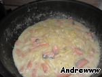 Через 5 минут выкладываем сваренные макароны в сковороду и томим 10 минут