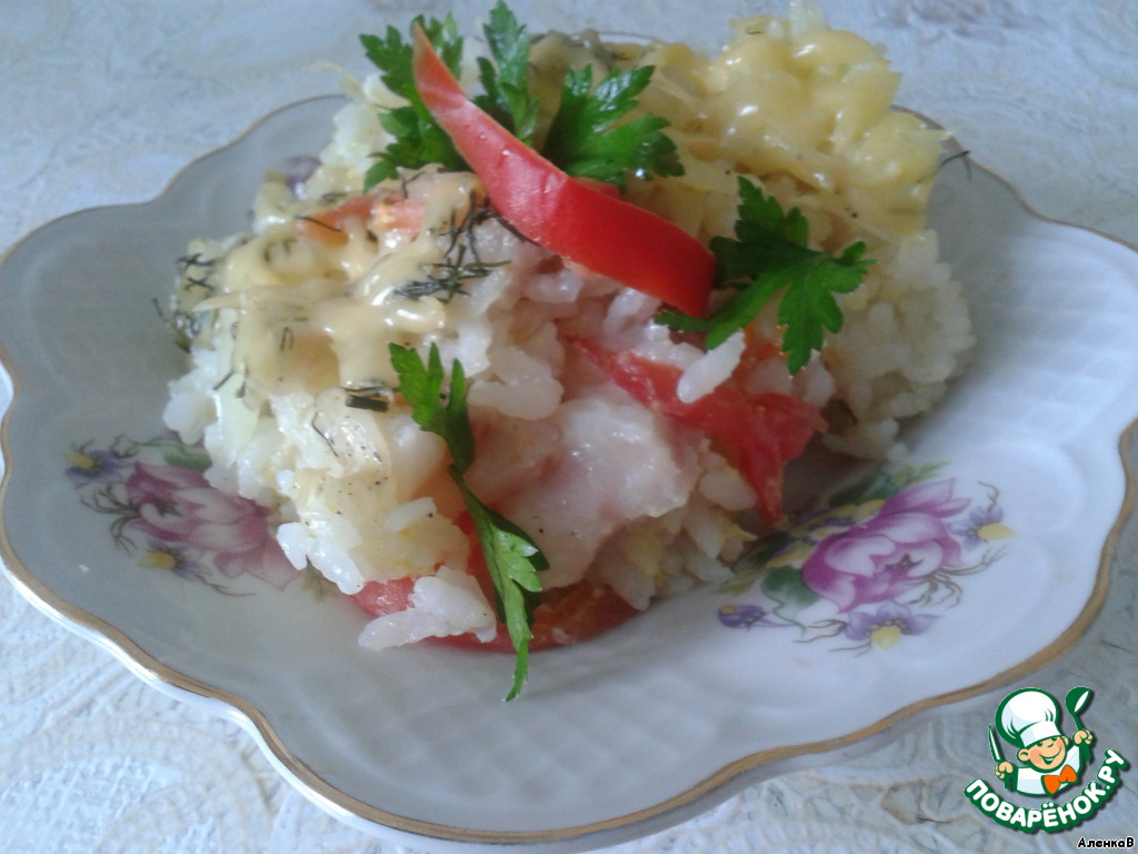 Помыл я печку и посуду и здесь... Снизошло вдруг чудо! Рецепт свалился мне на главу, И он утешит только паву... Запеканка из риса, рыбы и овощей. Одним словом, не мудрствуя лукаво...