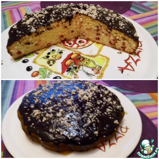 Я в тесто еще добавила какао и сверху тоже полила шоколадом.