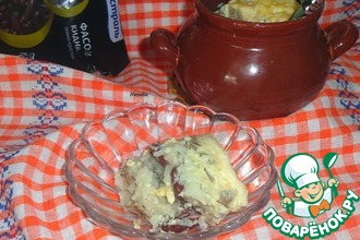 После того как выключите духовку, можно оставить горшочек в духовом шкафу еще на 10-15 мин. Дать протомиться. И кто любит пожирнее, добавьте еще топленого масла.