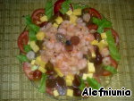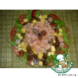 Рецепт нашла на просторах инета, к сожалению, не было указано, кто автор. Очень свежий и приятный салатик для любителей морепродуктов.