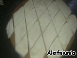 Так продолжить со всеми коржами, последний не посыпать. Разрезать на ромбы или как вы захотите.