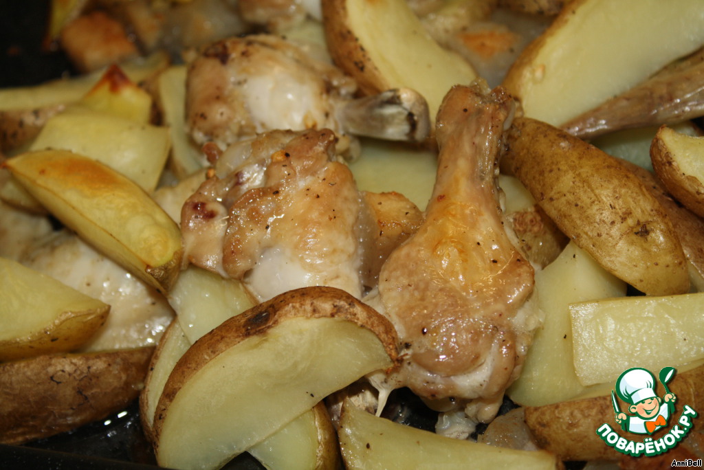 Рецепт «Картофель, запеченный с куриными крылышками»: