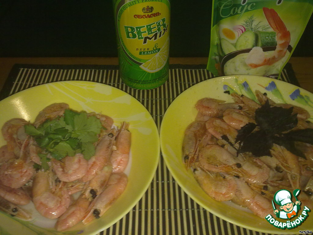 Описание:Очень вкусная и ароматная закуска к пиву. С тех пор, как я в первый раз попробовала эту закуску, пиво без этих креветок я не представляю. Пусть вас не пугает, что их надо жарить. Жарить - это символично, так как это больше можно назвать - тушить, так очень много воды с креветок.