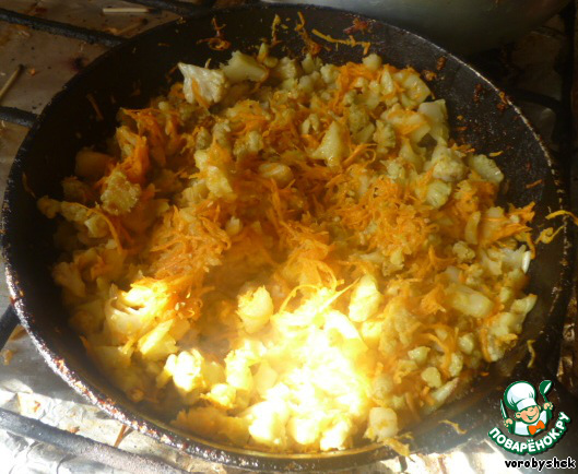 Обжариваем на растительном масле вместе с мелко нарезанным луком и мелко натертой морковью.