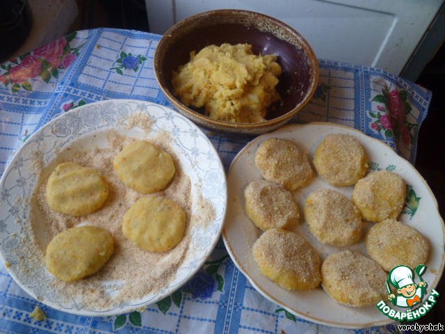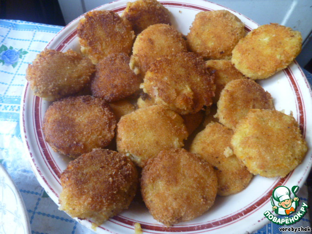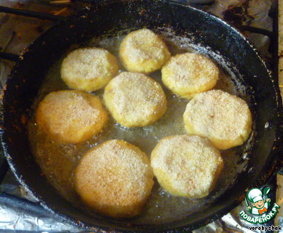 Сухарей у меня не было - поэтому обваливала немного в муке (как обычные мясные котлеты).