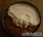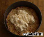 Выложить половину крема на первый корж, разровнять.
