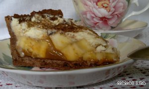• В выпеченную песочную форму выложить сгущенное молоко и нарезанные дольками бананы.