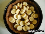 • В выпеченную песочную форму выложить сгущенное молоко и нарезанные дольками бананы.