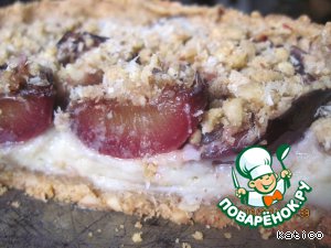 Рецепт «Ореховый пирог с кокосовым кремом и сливами»:
