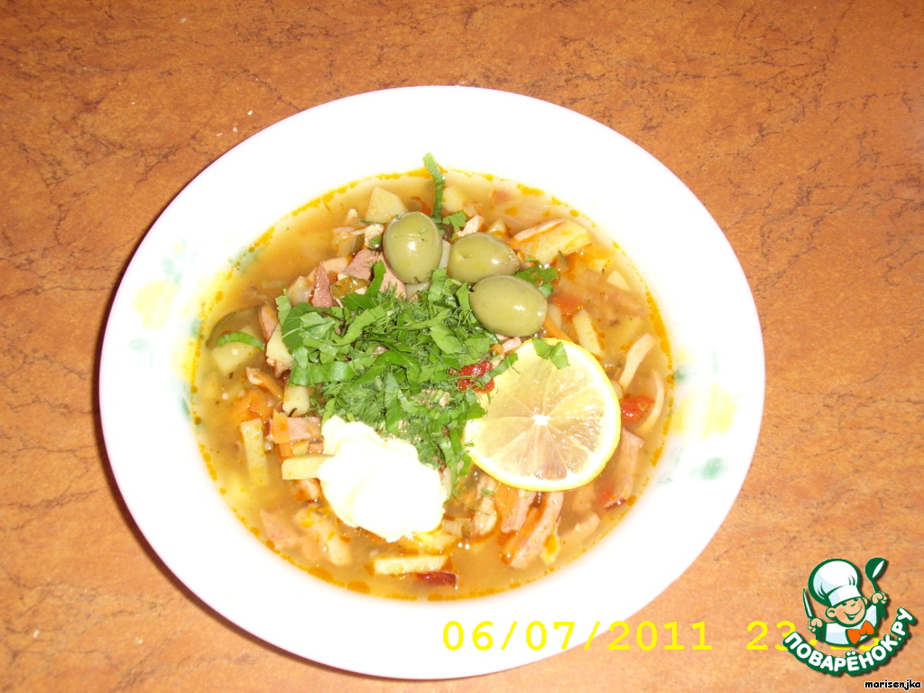 Рецепт «Солянка домашняя на куриных сердцах»: