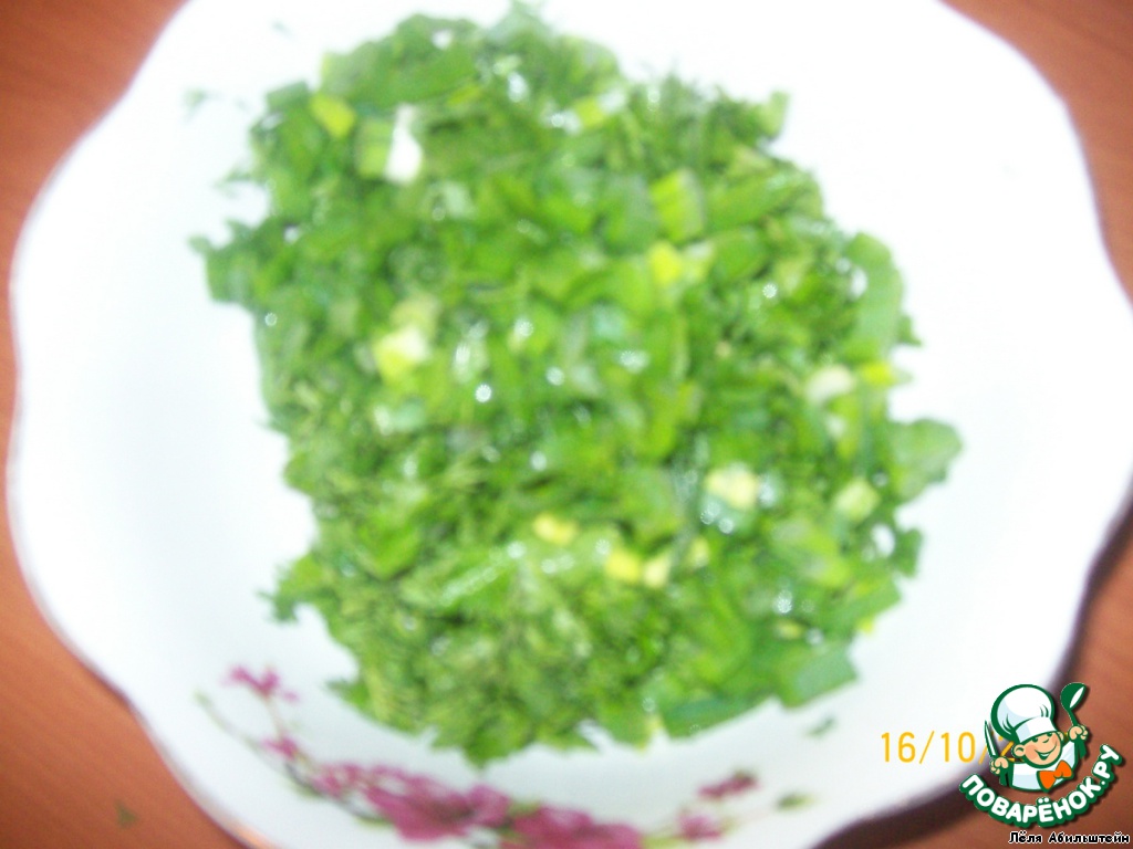 Пока соляночка томится, готовим "джентельменский набор": шинкуем зелень (у меня укроп и петрушка).