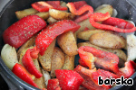 Крупная нарезка здесь оч. уместна, поскольку блюдо ещё долго томится в духовке, а овощи при этом не развариваются.[x]19:06 03.11.11 Отредактировано создателем комментария[/x]