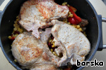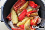Выложить в большую жаровню (кастрюлю, чугунок, гусятницу) послойно: