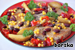 Яркое и праздничное блюдо, которое порадует Вашу семью в хмурые осенние дни. В моей семье не оставило никого равнодушным, да и гостям очень понравилось. Судите сами и пробуйте сами... Идея взята из нем. кул. ж-ла "Kochen und geniessen" - "Хиты из духовки" за сентябрь 2011, но немного изменена.