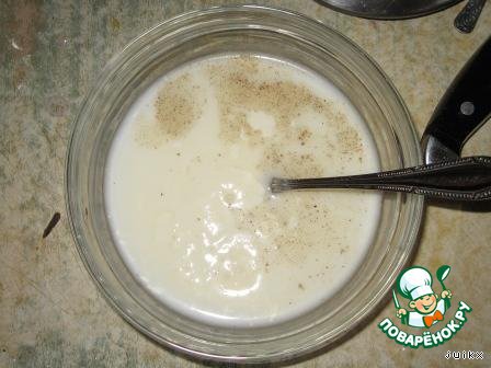 • Соус. Сметану разбавить водой. Добавить соль, перец. Перемешать.