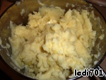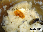 Когда картофель сварится, слить воду. Картофель размять в пюре. Добавить яйцо, молоко, масло сливочное. Готовое картофельное пюре разделить на три части.