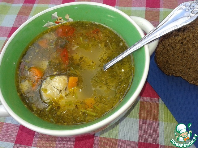 Нежная рыбка и рис, пряные овощи и травки, супчик вышел на славу) Спасибо!