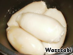 Выложить полные кальмарчики в кастрюлю, накрыть крышкой и убрать в холодильник на 8-10 часов.