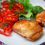 Я не собиралась выставлять этот рецепт маринада, пока мой сын не увидел, что я выставляла "его любимое мяско". Он попросил выставить и его любимую курочку. Этот маринад для курицы я нащупала методом проб и ошибок, и теперь мариную курицу только так. Очень просто, а курочка получается вкусная и изумительно нежная.
