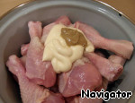 Далее - майонез или сметану. Майонез и сметана помогают сделать курочку более сочной.